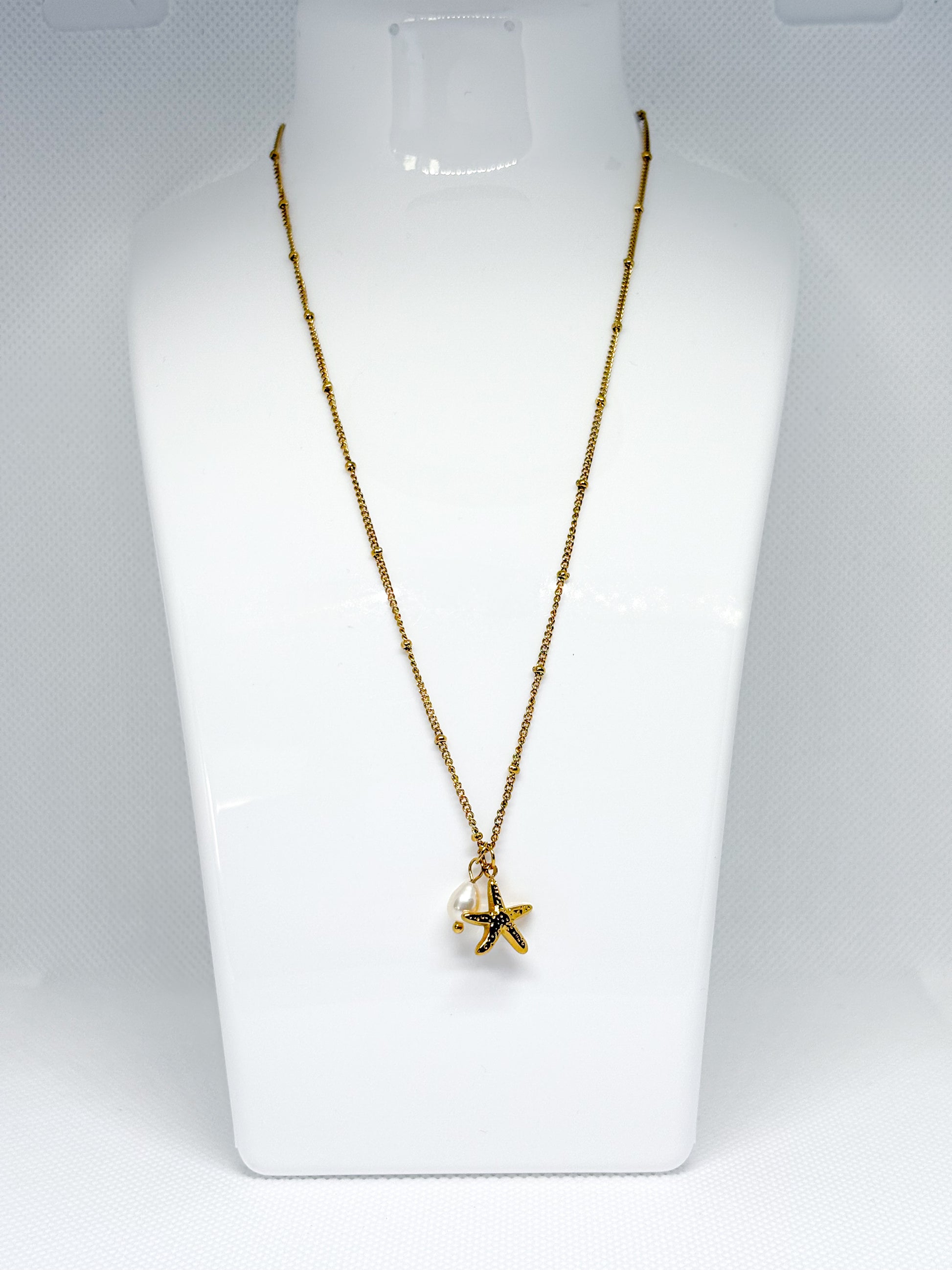 Collier “Stella” – Un bijou fin doré orné d’une délicate étoile de mer, symbole de lumière et d’océan.